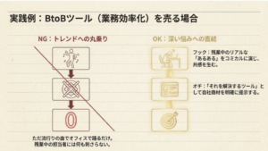 結論から言えば、「自社の商材が解決できる『深い悩み』に直結した発信」を愚直に続けるしかありません。 エンタメ要素を完全に排除しろというわけではありません。TikTokという媒体の特性上、見やすく、親しみやすい「フック(入り口)」は必要です。しかし、そのフックの先にある「オチ」や「本題」は、必ず自社のサービスや、ターゲットの課題解決に関連していなければなりません。
